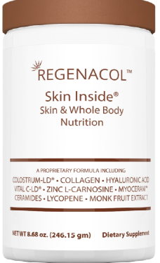 Regenacol ahozko edertasun osagarriak behi-kolostroa, C bitamina, behi-kolageno-peptidoak eta likopenoa ditu. Likopenoak prokolageno maila handitu dezake (kolagenoaren aitzindaria), eta horrek larruazalaren zahartzea murrizten laguntzen du eta larruazala izpi ultramoreek eragindako kalteetatik babesten laguntzen du.